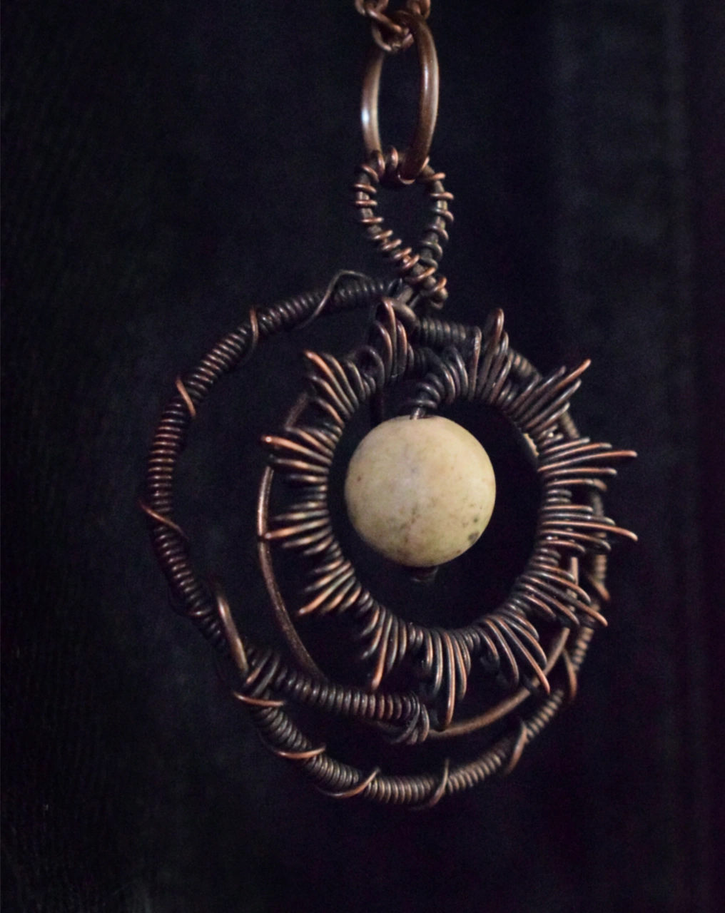 Unveil the mystical allure of "The Magician" Pendant from our exclusive Koza Collection. This captivating piece is designed to evoke the essence of magic and transformation, featuring a striking combination of silver rock and intricately woven copper wires.