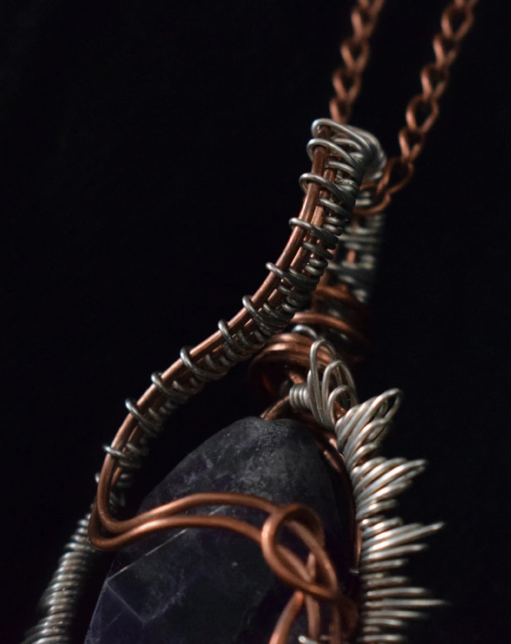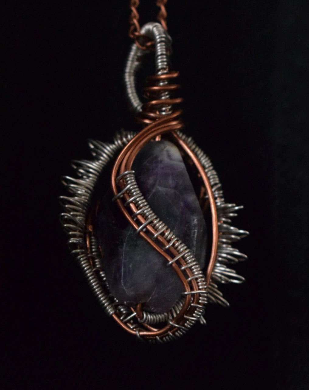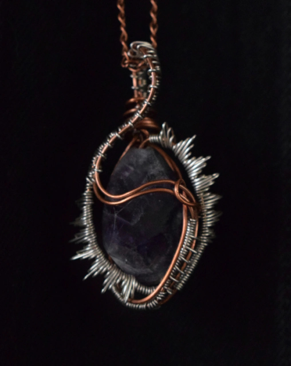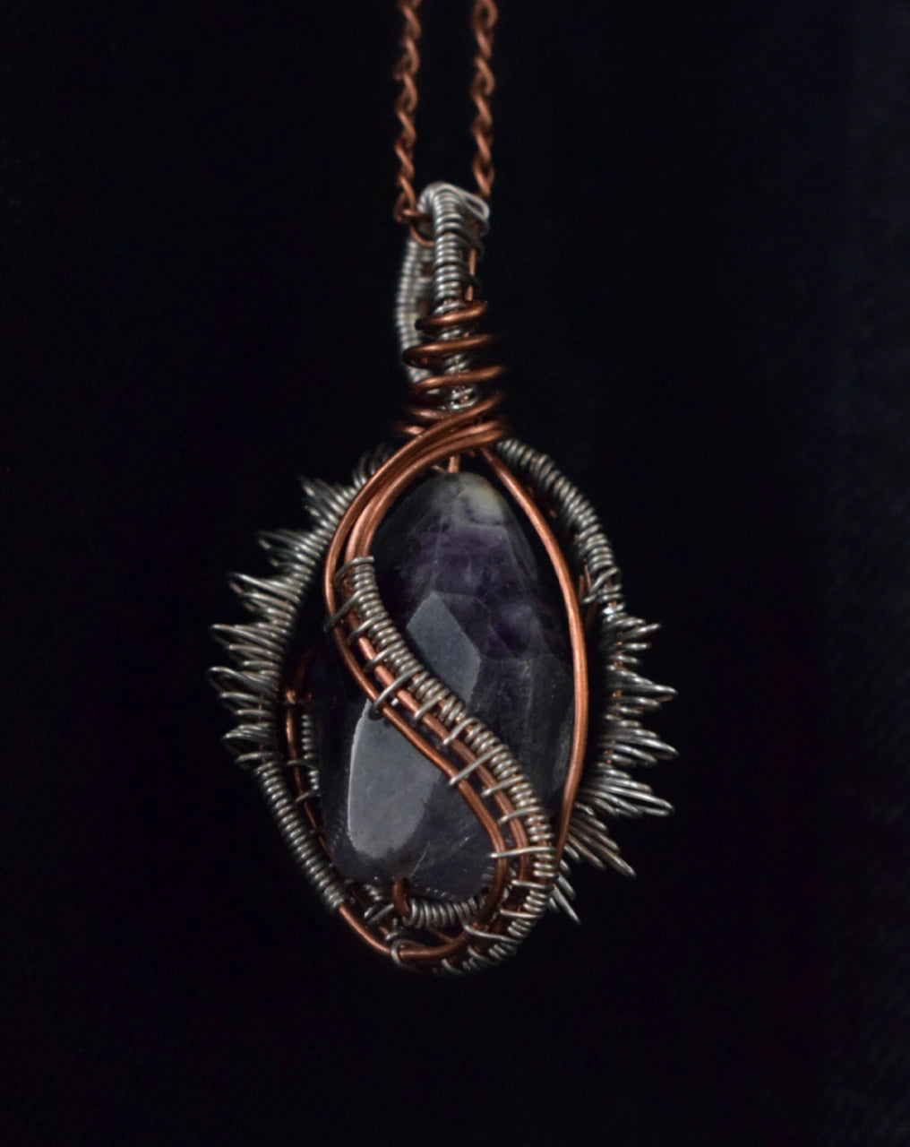 Unveil the mystical allure of "The High Priestess" Pendant from our exclusive Koza Collection. This captivating piece is designed to evoke the essence of magic and transformation, featuring a striking combination of silver rock and intricately woven copper wires.