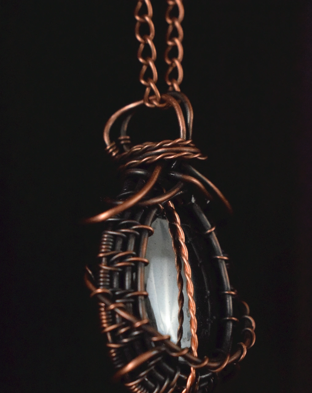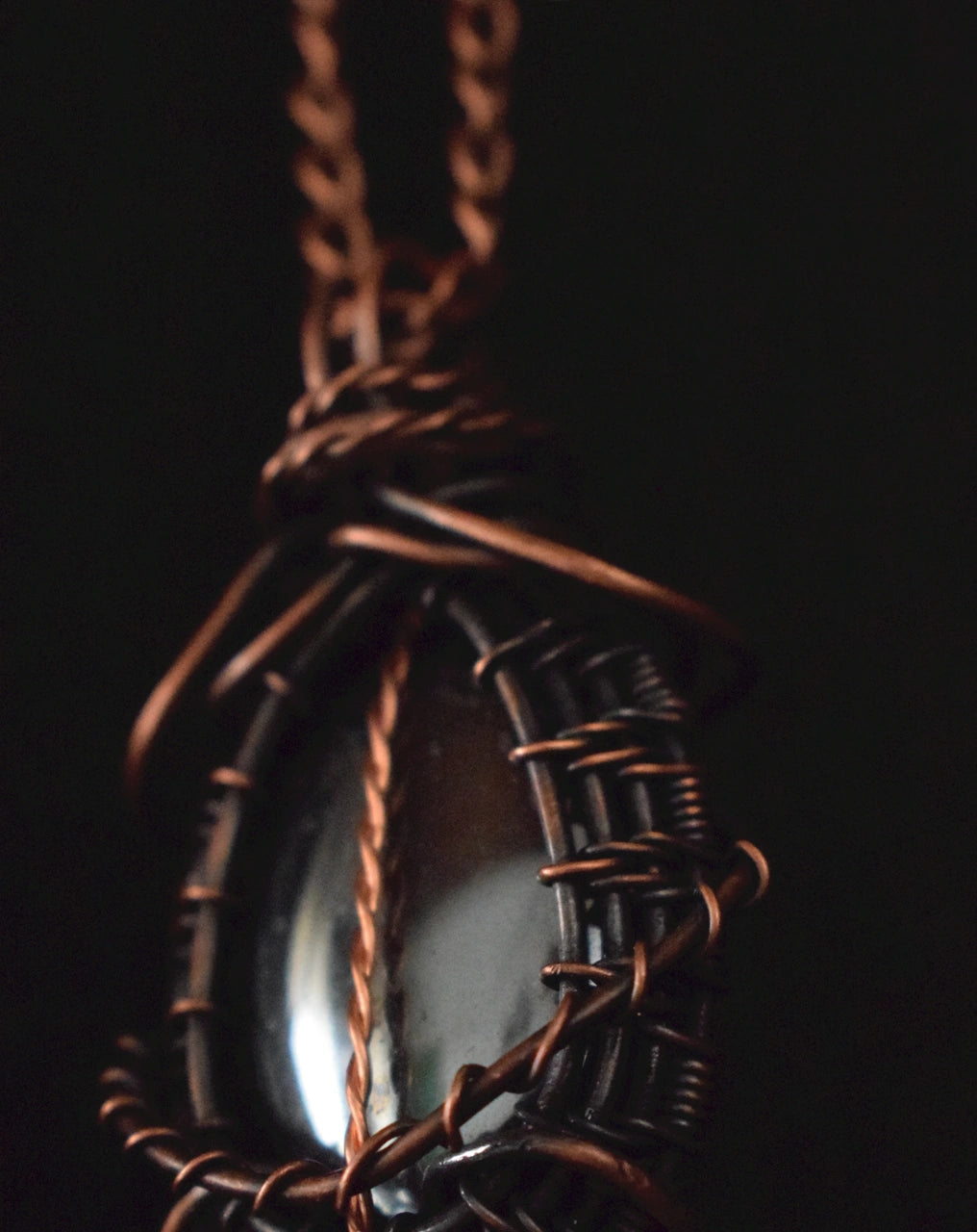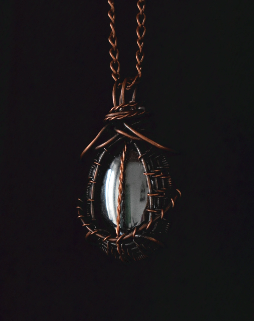 Unveil the mystical allure of "The Magician" Pendant from our exclusive Koza Collection. This captivating piece is designed to evoke the essence of magic and transformation, featuring a striking combination of silver rock and intricately woven copper wires.