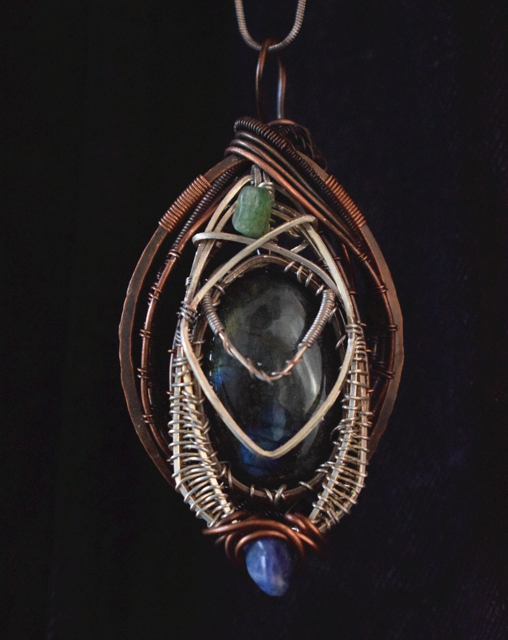 Unveil the mystical allure of "The Magician" Pendant from our exclusive Koza Collection. This captivating piece is designed to evoke the essence of magic and transformation, featuring a striking combination of silver rock and intricately woven copper wires.